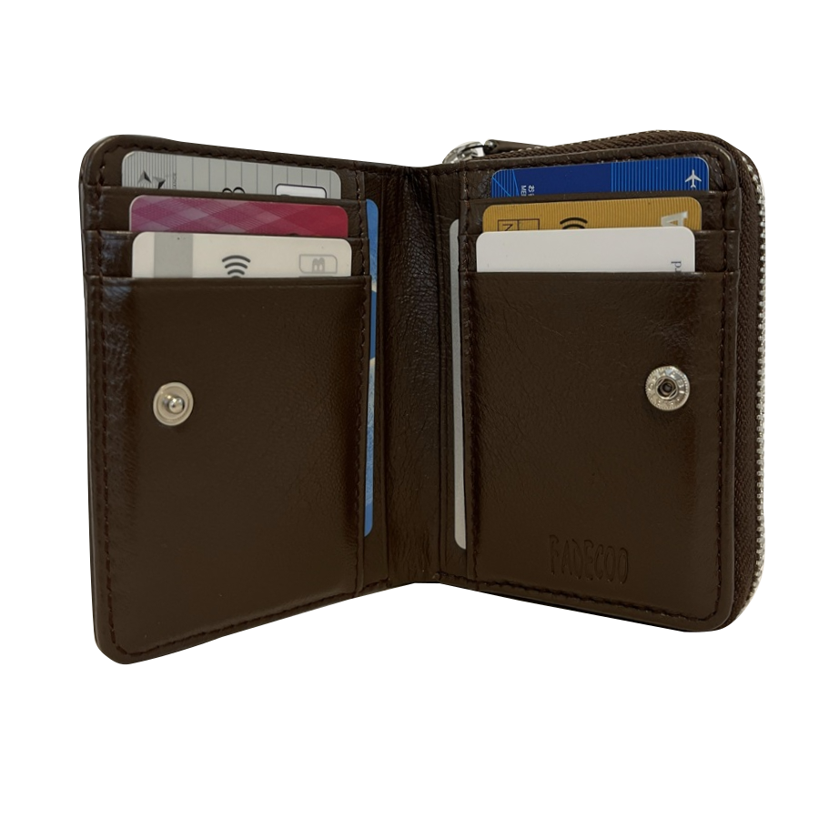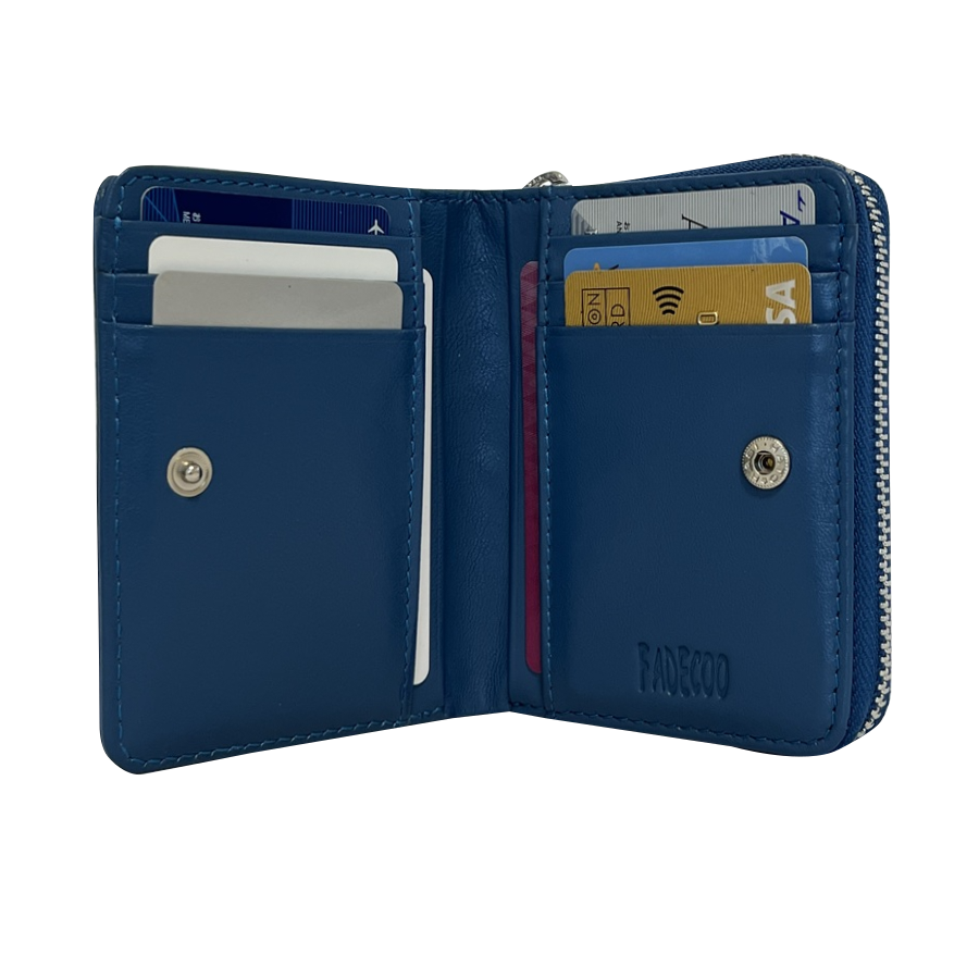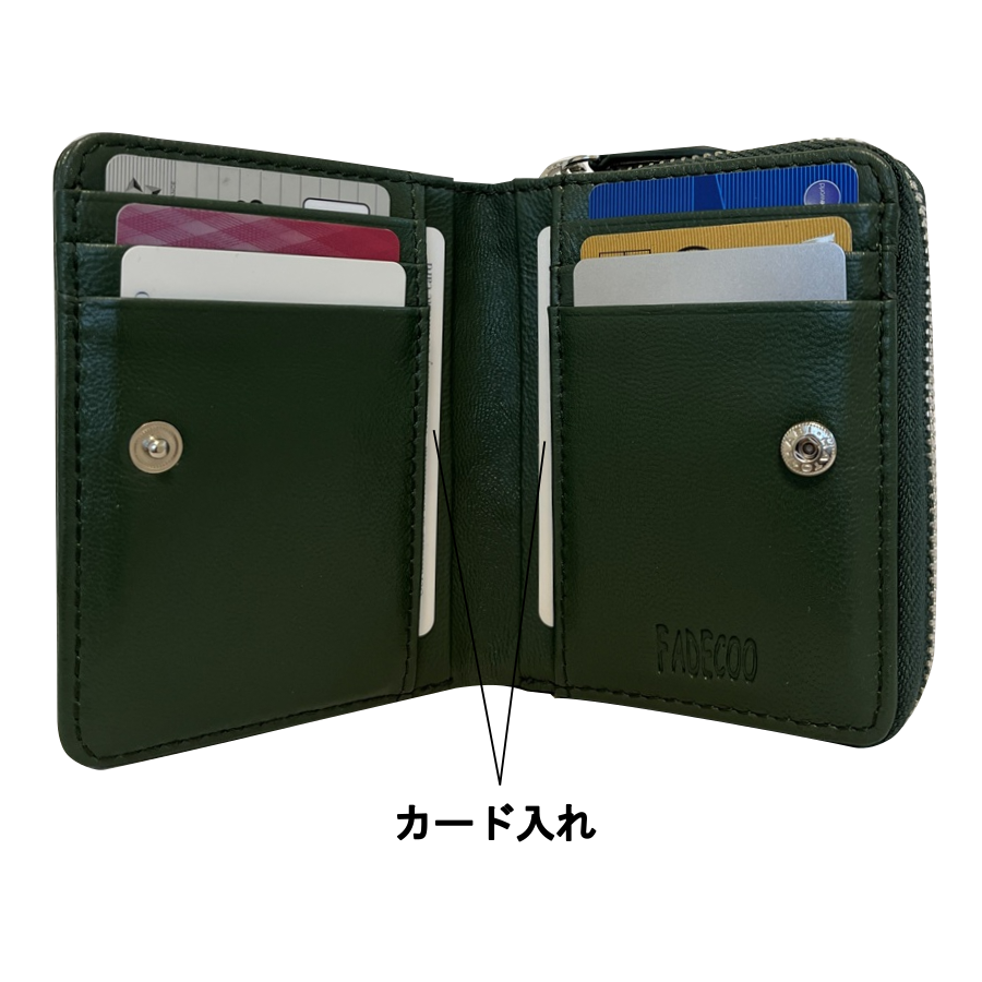 【FADECOO】本革レディース二つ折お財布です。上質な本革を使用し、洒落たデザインを実現しました。ファスナー付きのコイン入れは、小銭をしっかり収納でき、カード入れも2箇所を設け、YKKファスナーを採用しているため、耐久性も抜群です。お札入れやカードケースとして使える機能性も兼ね備えています。コンパクトながら、必要なものをしっかり収納できるので(12枚カード入れ可能)、普段使いに最適です。ギフト梱包も無料で承りますので、大切な方へのプレゼントにもぴったりです!お洒落さと機能性を兼ね備えたこのお財布で、日々のコーディネートを一層楽しんでください!