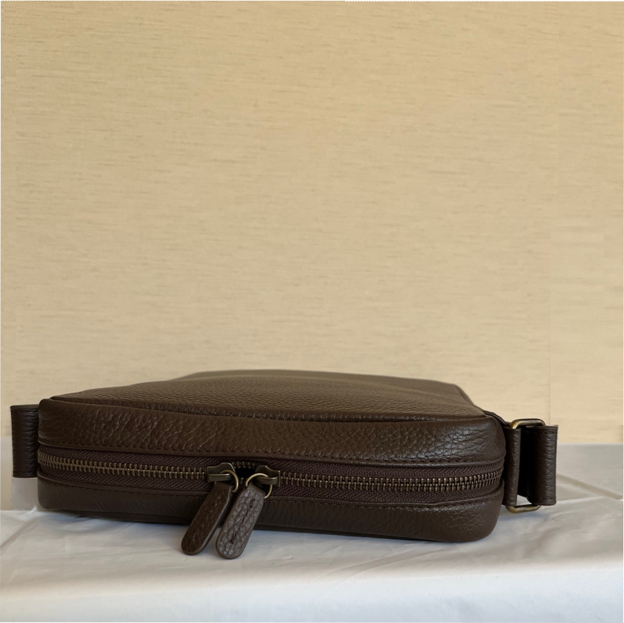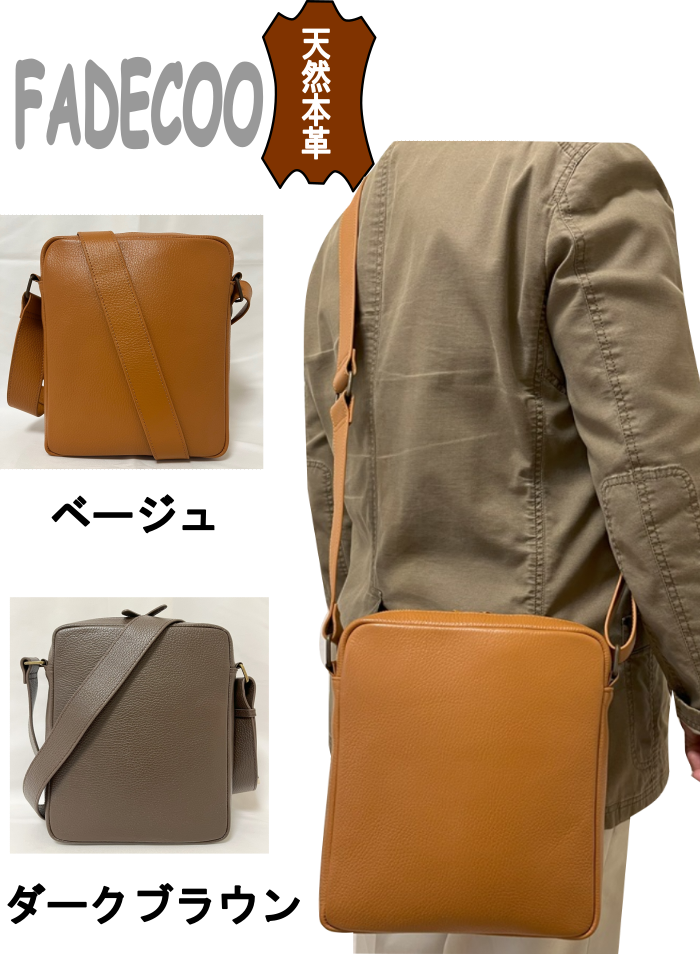 【FADECOO】メンズ 天然厚手本革ショルダーバッグです。最新モデル(第10世代)のiPadが余裕に入れます。ハーフ仕切りが設けられているので、整理しやすいです。内側にフリーポケットが二つ、ペンセットが一つ、ファスナーポケットが一つあります、スマートに収納することができます。また、背面にもファスナーポケットが一つあります。ショルダーストラップの幅が4センチあるので、肩にやさしいです。外側のファスナーはすべて耐久性に優れたYKKファスナーを使用しています。