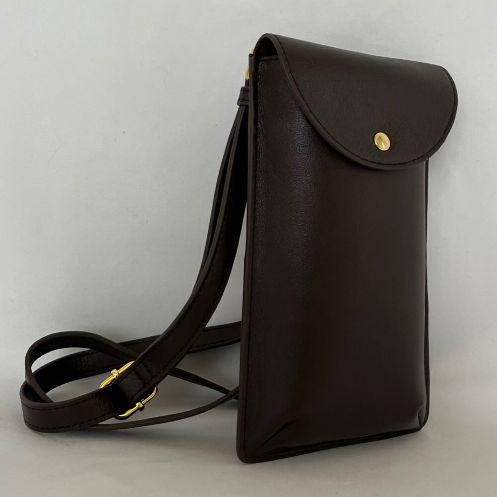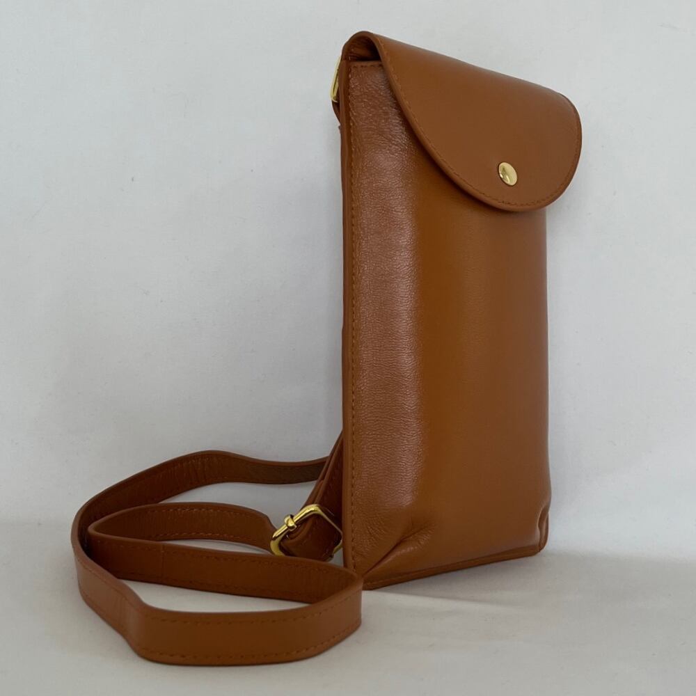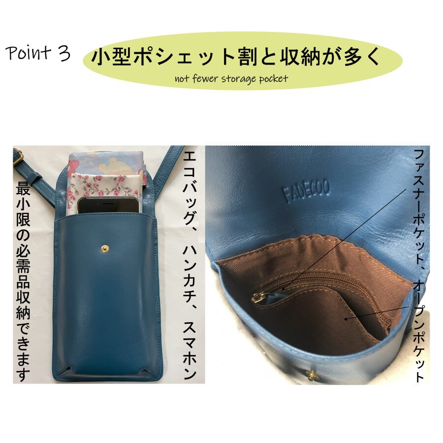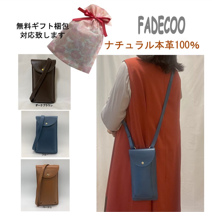 【FADECOO】少し艶のある ナチュラル本革 縦長のシンプルなポシェットバッグです。小型ですがスマホンやパスケースなどをすっぽり入れられます。中にはオープンポケットとファスナーポケット それぞれ一つあります。ちょっとした貴重品を収納することができます。最低限の必需品の収納ができます。背面にも一つポケットがあります。最低限の必需品の収納ができます。旅行先でサブバッグとしても使えます。シンプルでおシャレ―なアイテムです。